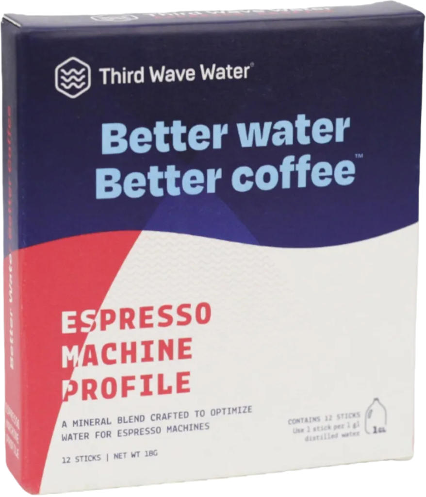 Third Wave Water Espresso Profile 4.6/5 stars View on Amazon Mineral packets designed specifically for espresso brewing. Creates optimal water composition for extraction while reducing descaling frequency by balancing essential minerals.