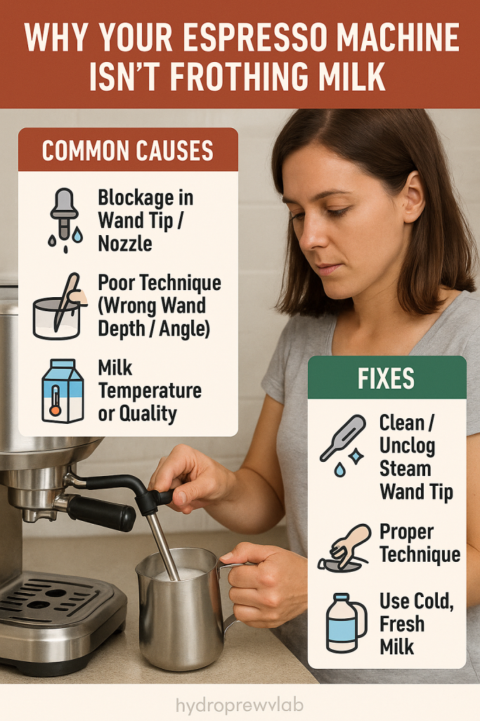 Steaming milk to a creamy, velvety texture is an essential part of making lattes, cappuccinos, and flat whites. But what happens when your espresso machine isn’t frothing milk properly? Whether you’re getting large bubbles, no foam at all, or the steam wand doesn’t work, milk frothing problems can turn your café-quality dreams into a frustrating mess.