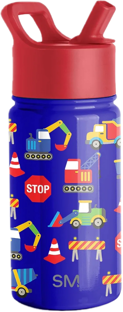 The Simple Modern Summit Kids Water Bottle is constructed from food-grade 18/8 stainless steel, providing durability and safety. It features a leakproof straw lid that makes it easy for kids to drink without worrying about spills. The double-wall vacuum insulation keeps drinks cold for hours. Available in a huge variety of colors and patterns, this bottle has designs that appeal to kids. Its lightweight build and ergonomic shape make it easy for small hands to grip, making it an excellent travel companion. While it is dishwasher-safe, handwashing is recommended to extend longevity. Approximate price: $18.